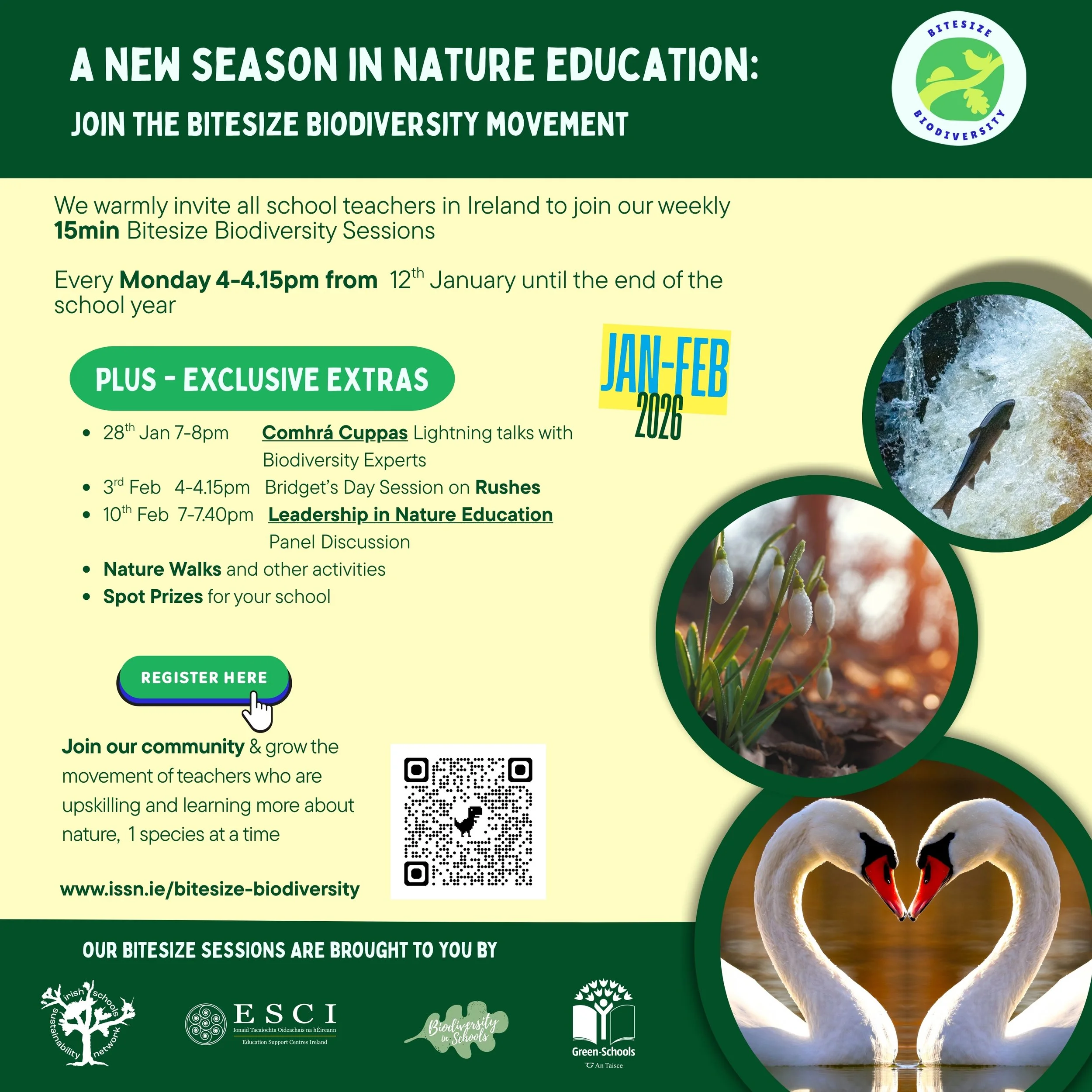In Jan-Feb 2026 alongside our weekly Bitesize Biodiversity Sessions on Mondays we are celebrating a New Season in Nature Education, We are asking for teachers all across the country to join our Bitesize Biodiversity Movement.